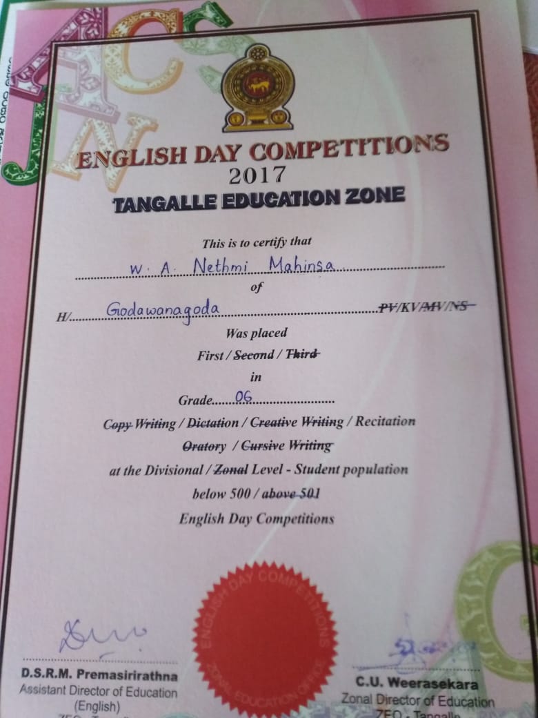 2017 English Day Competition Tangalle Education Zone Grade 6 Recitation First Place Win.